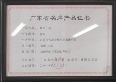 广东省名牌产品证书