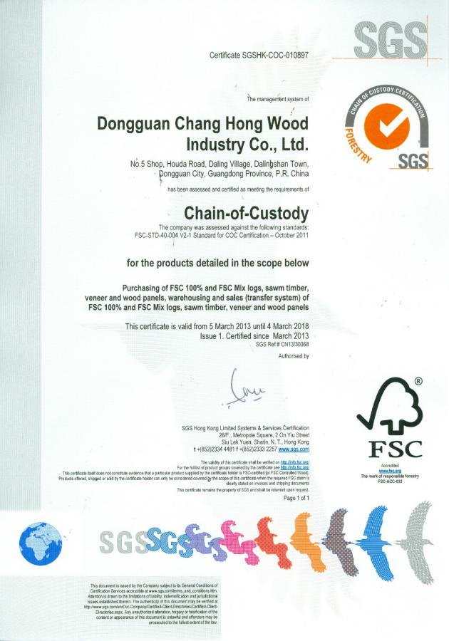 说明:FSC木皮认证