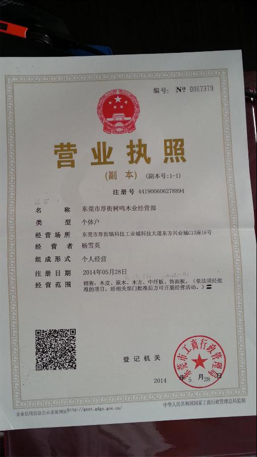 东莞市厚街树鸣木业经营部