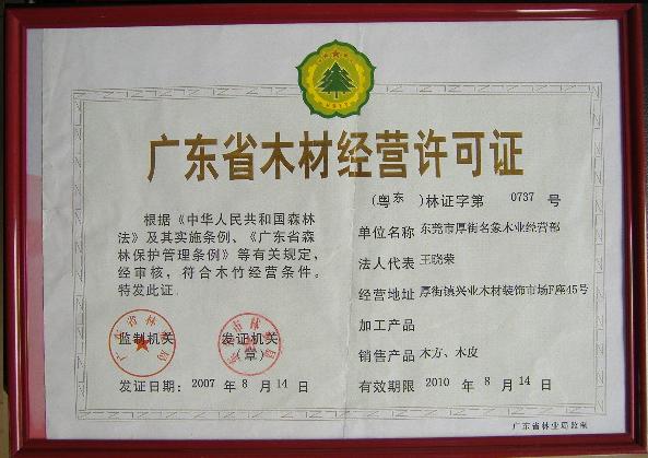 名象木业木材经营许可证