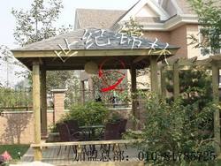 诚信人防腐木四角亭,风格独特,经久耐用, 常规是3米*3米,顶部为4米*4米,高度为2.6米-3米 也可以根据客户需要改变和定制风格。 本公司长期为全国各地客户制作,欢迎订购!