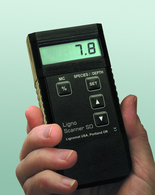 品牌:利格诺迈特Lignomat,德国制造,美国组装 型号:Scanner SD 测量范围:5-99% 树种档位:71个档位 测量深度:7mm和20mm 电池:9V 显示方式:数字电子屏幕,0.1%分辨率 感应板尺寸:41×67 测水仪尺寸:50×125×12.5mm