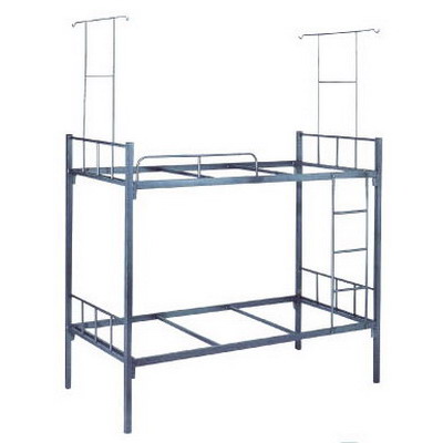 公寓床部分主要材质:直径32~35mm,壁厚1.2mm以上方钢管;床板可配置木质、弹簧式床板。含蚊帐铁架。