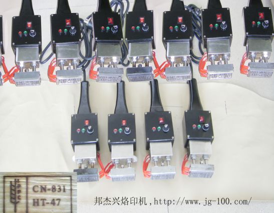 本机选用先进微电脑温控系统,采用优质金属材料制成,使用方便、实用、耗电低、热效应好。 适用于:IPPC标识烙印,LOgo烙印机、烫印机,商标烙印,日期烙印,卡通图案烙印,木材皮革,橡胶,塑胶,皮鞋,另有台式烙印机、烫印机,以适合于各种产品的烙印机、烫印机,