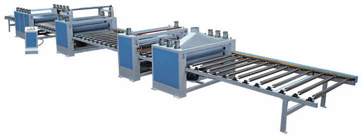 产品说明:本生产线配置齐全,除尘,涂胶,贴纸,切纸,热压一次性完成。采用气缸做为加压,操作方便。具有速度快,贴面不起皱,不起泡等特点,是大规模板材厂,装饰板加工企业的理想设备。