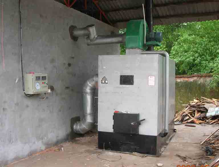 我厂所生产的系列热能设备,属于旋转反射式热风炉,是我厂独家制造。本设备所需燃料以木材下脚料、锯末为主。采用了俄罗斯产高铬耐火导管,韩国产专用炉壁钢板和高硅、高铝、熔封剂、保护炉壁,使之950℃保持原技术状态不变。内部三个燃烧室复杂结构,使火在三个燃烧室反射于四周,热量均匀的辐射,使受热面温度平衡。达到寿命长的目的。同时每小时7000-10000立方的热风量的热风量由风机循环送出,产生180-200度的清洁热风满足烘房需要。安装左右两部日式热能蒸汽发生机,产生大量的长压蒸汽满足使用需要或剩余排放。并配有煤炭高温脱硫剂、脱氮剂、国家达标(北京京鲁化工有限公司专利),总体效果换热效率高、、辐射均匀、二次供氧、燃烧充分,提温快、节能、寿命长、安全、操作方便、价格合理。