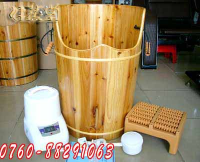 产品说明:*中山健蒸堂-是国内南方地区最大最全的蒸足桶、蒸脚桶、蒸身箱及熏蒸用品的销售企业,欢迎你的到来* 额定功率:850W 额定电压:220V 8档位温度调节配置:直径42CM、高62CM、厚1.5CM分子炭化木桶+蒸汽机+硅胶连接管+圆柱六排滚珠大脚踏凳包装规格:43CM×43CM×63CM 有遥控,可自由调节温度及时间 功效与原理:(特别指出,经过分子炭化后的木桶色泽亮丽,结实耐用,使用起来一点都不亚于香柏木桶) 熏蒸疗法主要作用于人体的皮肤和官窍,所以对各种病在皮肤的病症和五官九窍的各种病症尤为适宜.皮肤是人体最大的器官,除有抵御外邪侵袭保护自身作用外,还有内分泌、吸收、渗透、排泄、感觉等多种功能。中医熏蒸就是利用皮肤这些生理特性,使药物通过皮肤表层吸收,角质层渗透和真皮层转运进入血液循环而发挥药效。按中医理论而言,熏蒸法采用由下而上的循行途径,通过渗透穴位,疏通经络,益气养血,以调节机体阴阳平衡。 熏蒸的温度又能增强吸收的效果。皮肤的吸收渗透与温度有关,中医熏蒸的温热刺激使皮肤温度长高,毛细血管扩张,促进血液及淋巴液