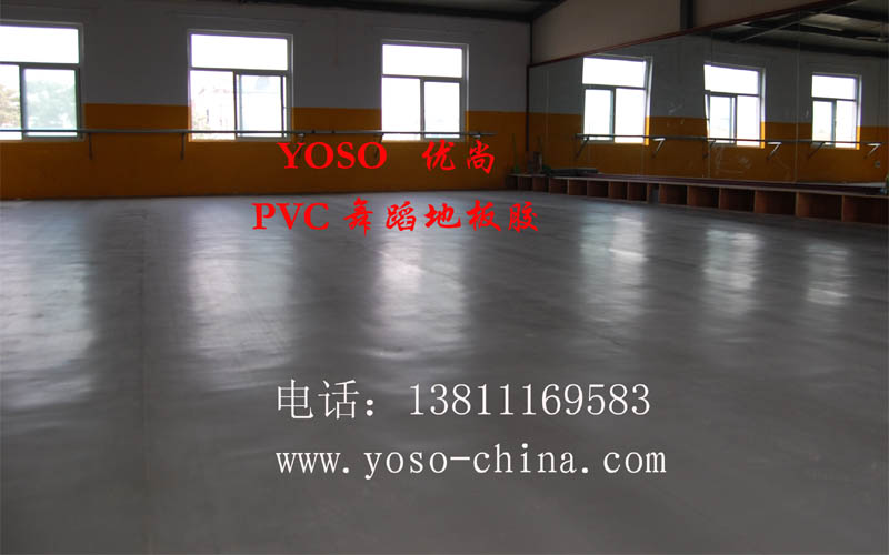 产品说明:YOSO舞蹈专用地板的特性: 1. 稳定性 YOSO舞蹈房地板产品由100%纯软质的PVC优质材料组成,保证了本产品在运动过程中尺寸的稳定性及牢固性,并起到了自动补强作用。 2. 舒适性 YOSO舞蹈地胶表面经特殊处理,与灯光亮度吻合,不会吸光和反光刺眼,能更好的保护舞者在运动的过程中眼睛不易产生疲劳感。厚度分为3mm、4mm、5mm,不同的厚度拥有不同的缓冲回弹值,使其更具有减震性和反弹。有效地减轻了舞者的腿部冲击力,使脚感更舒适,更好的避免运动损伤,提高舞者水平的发挥。 3. 耐久性和耐磨性 YOSO舞蹈房地板胶采用100%纯软质的聚氯乙烯优质材料,面层经特殊高环保高科技材料TPU技术处理,及具最佳耐久性和耐磨性,从而增加了地板的使用寿命。 4. 安装方法多样 YOSO舞蹈房地板胶安装方法共有两种:⑴活动式 ⑵全固定式。我们根据客户舞蹈场地的使用要求进行安装。 5. 保养容易 YOSO专业舞蹈地板胶表层对外界污染有排除能力,如表面污染,用干净拖把、清水刷洗即可。 6. 吸音性能好 YOSO专业舞蹈地板标准的底层厚度,加上适合的反弹性和合理的吸震性,在运动中