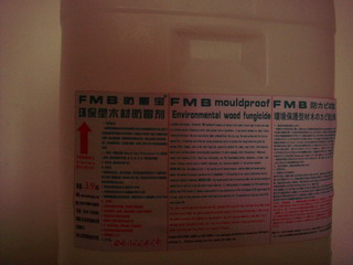 FMB防霉宝属内吸抗雨水流失型木材防霉剂.能在水中迅速容解形成淡白色乳液.其高分子活性成分能迅速扩散渗透至木材纤维组织中.不仅能防止木材内部产生蓝变.还能触杀木材表面霉菌,本品对多种曲霉、木霉和青霉有很强的杀灭作用,对防止蓝变菌生长有明显效果,是竹、木材的理想防霉剂,尤其适用于橡胶木,樟子松,落叶松,桦木,枫木等易霉变树种预防处理