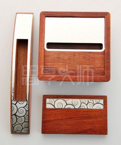 产品说明:“祥云”商务礼品三件套,黄檀木名片盒,名片架,便签盒