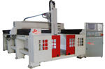 龙门式移动,工作台面固定,可任意加工工作台面上的材料,在泡沫雕刻行业有很高的价值,特别善于加工复杂的图形,加工速度快、效果好一次性可加工500mm深。
