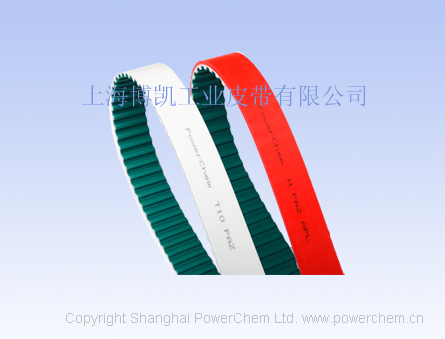 POWERCHEM传动带,上海博凯工业皮带有限公司生产大量同步带常见型号有:公制的T10,T5, AT5,AT10,英制的L,H,XL,XH,圆弧齿的3M,5M,8M,14M.双面齿的DT10,DT5等。可以根据客 户要求对聚氨酯同步带进行加工处理比如可以再齿背或齿面上加布,加红胶,黄胶,黑胶, 白胶,硅胶,PVC(爬坡带),加挡块,打孔等作业。POWERCHEM传动带库存充足,质量一流, 服务周到,价格公道客户可以根据自己的需要采购不同长度的带子,如有需要请找上海博凯 工业皮带有限公司,谢谢。