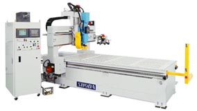 台面尺寸 3000 1500 做大型工件的加工 采用在高速领域能稳定输出的庄田自制高频主轴 根据选配也能安装万能刀座和数控旋转控制 强有力真空吸附固定加工件 装卸等的工作良好的吸附台面