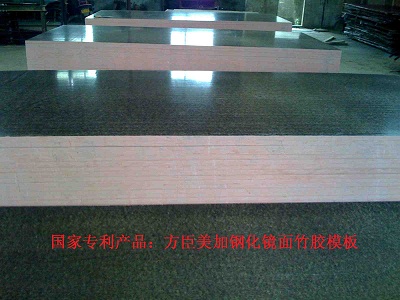 产品说明:产 品 特 性 1、高强钢化镜面模板,表面经钢化处理,不吸水、不变形、抗腐蚀、耐磨损、高强度、耐高温,可有效防止在装模过程中钢筋架织及预埋件施工时,电焊火花及人工踩磨对模面的损坏。从而可以优秀地保证模板表面的光洁与完整。 2、板面与混凝土不相容,表面不粘结,极易脱模,模面清洁方便,具有优良的重复使用效果。合理使用,可持续保持清水镜面混凝土外观质量周转达10至20次以上! 3、制模、装模、脱模快捷方便。脱模后现浇模面光滑平整,无需抹灰、粉饰,具备省工节料的明显直观经济效益。 4、钢化镜面附着力强,模板适度张曲,钢化膜面不崩裂。可根据工程要求进行适度的弧形和曲面设计,满足工程对模板高质量要求的异形制模功能。 市 场 应 用 钢化镜面模板,从材料结构上彻底改变了模板板面的工艺特性。是目前中国模板行业中品质最为优良的特种清水镜面混凝土模板!产品在满足一线高端模板市场的同时,兼顾考虑民用建工及国家重点工程,以极具竞争力的性价比,广泛适用于高标准清水镜面混凝土现浇。产品应用:国家重点大型工程,重点市政工程,核电工程、大型火力发电厂,城市精品高层建筑,以及城市高架公路、高架立交桥,桥梁匝道及高速公路大坝、涵洞、立交通道等永久不装修的清水混凝土现浇工程。
