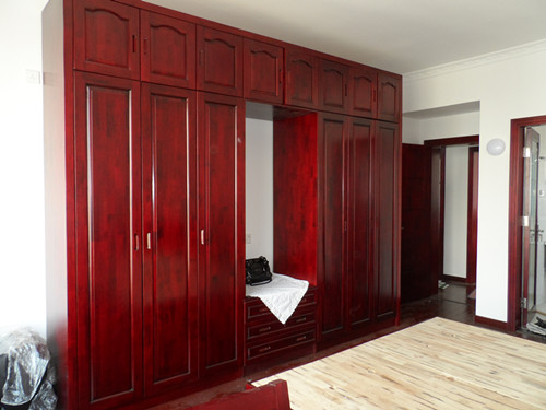 产品说明:全实木衣柜。市场上的实木家具大致有两种,纯实木家具和混实木家具。后者是实木和人造板的混合体,但从外观上看,其人造板材部分的纹理、手感及色泽都和实木家具别无二致。销售人员在介绍时往往浑水摸鱼,不说清楚,这就需要消费者自己留神。 首先,实木带有木香。比如,松木有松脂味、樟木有樟脑味。而纤维板、密度板等板材因大量用胶,有较浓的刺激性气味。柜子里的隔板或抽屉的底板是人造板冒充实木的常见部位,尤其应当注意。选购时要打开柜门,拉开抽屉,闻一闻是否有异味。 购买板式家具同样要注意环保问题,要注意家具内部的气味,如果有辣眼与刺鼻的味道则不能购买。