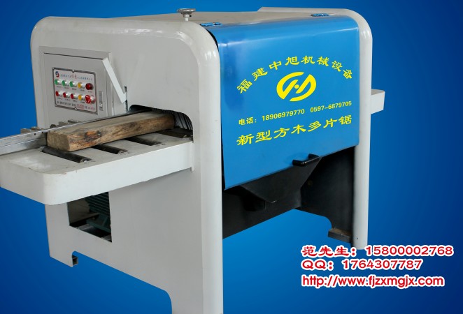 产品说明:型号:MGJF 8×25加工长度:50cm-100cm加工厚度:8cm加工宽度:25cm锯片规格:160×1.6×50×24T+2T 型号及主电机功率:15千瓦×2台送料电机功率:1.1千瓦送料速度:8米 ∕分钟(可调速) 冷却方式:轴心喷水冷却水压力:0.30~0.60MPa外形尺寸:165cm×125cm×120cm 设备性能: 该多片锯主要用于锯切方料, 加工成多片规格板。上下轴设计,加工口径大。 具有锯路小、锯销表面光滑、高出材率。是加工指接板、细木工的板、包装板等最理想的木工机械设备。设备特点: 一:使用超薄小尺寸锯片,负荷小,省材省电。 二:上下传动轴同步转动,送料强劲有力,进退自如,不会出现卡死木料,不能进退的情况。 三:出色的防水设计,使主轴工作时完全防水,不烧锯片。四:经过动平衡专业检测,震动,嗓音更小。 四:采用优异品质电机,使用寿命长。