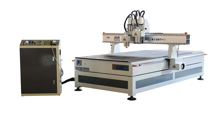 产品说明:通过多机头交替工作,可实现刀具的快速自动切换,省去了人工换刀的时间,提高了工件的整体加工速度和精度。 部件优良:台湾控制系统,主轴轴承为高精度陶瓷轴承,噪音低、寿命长。进口直线导轨;德国产滚珠丝杠,承重力大、下刀准确。 设计合理:采用先进的Y轴双齿条传动,速度快、力量大。 性能无忧:拥有断点续雕、断电恢复、加工时间预测等功能,真正人性化设计。 台湾产高附着力真空吸附装置,可达312立方/小时。 软件兼容:可兼容type3/artcam/castmate/文泰等多种CAD/CAM设计软件生成的加工代码,确保设计无障碍。 完善的自动注油润滑系统,延长了机器使用寿命。 技术规格:工作台面积Machine size 1380×3000mm 工作行程Work Envelope 1300×2500mm 重复定位精度Repositioning resolution ±0.02mm 系统分辨率Resolution ±0.0025mm 主轴功率Power of Spindle 4.5KW 主轴转速Spindle speed 6000-24000rpm/Min 空运行速度Max.speed 35m/Min 最大加工速度Max.cutting speed 15m/Min 龙门高度Bridge clearance 200mm 工作电压Working voltage AC380V/50Hz 运行指令Command code HPGL G代码