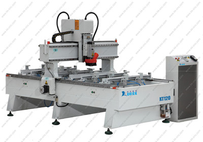 产品说明:专业用于缝纫机台板的铣型、打孔,1-4个工位可选,具体参数根据工艺要求量身订做。 结构稳定:重型钢结构床身,坚固不变形。 部件优良:采用台湾产直线导轨;双排四列滚珠滑块、承重力大、运行稳定;台湾滚珠丝杠,下刀精确;高速风冷主轴电机,主轴轴承为高精度陶瓷轴承,噪音低,寿命长。 驱动更强劲:采用知名品牌6504A步进电机,动力更强劲。(可选配伺服系统) 设计合理:采用先进的Y轴双齿轴齿条传动、速度快、力量大。 操作方便:采用先进的USB接口式DSP手柄操作系统(可读U盘),完全脱机工作、不占用电脑资源。 软件兼容:开放式软件接口,可兼容type3/artcam/castmate/文泰等多种CAD/CAM设计软件生成的加工代码,确保设计无障碍。 完善的自动注油润滑系统,延长了机器使用寿命。 机械规格: 工作台面积Machine size 1460×3300mm 工作行程Work Envelope 1300×2300mm 可夹最大工件体积(XYZ) 1300×1100×50mm 可夹最小工件体积(XYZ) 200×400×15mm 重复定位精度Repositioning resolution ±0.02mm 系统分辨率Resolution ±0.0025mm 主轴功率Power of Spindle 12KW*2 主轴转速Spindle speed 6000-18000rpm/Min 空运行速度Max.speed 10m/Min 最大加工速度Max.cutting speed 2-6m/Min 龙门高度Bridge clearance 200mm 工作电压Working voltage AC380V/50Hz 运行指令Command code HPGL G代码