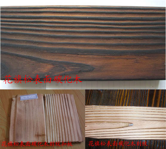 花旗松表面碳化木:厚21mm,28mm,50mm,宽95mm,150mm,长4000mm 花旗松表面碳化刻纹扣板:厚12mm,15mm,宽95mm,长4000mm