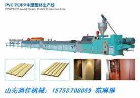 产品说明:木塑生产线主要生产木塑装饰板材,木塑门板,木塑异型材等木塑制品。主机采用变频调速,螺杆芯部调温的超锥形双螺杆挤出机。木塑生产线所生产产品具有木质感强、防水防腐、防虫蛀等特点,且产品不含任何甲醛及其它有害组分,安全环保,为您打造健康环境。还具有优异的抗老化性能,在长时间日晒雨淋的条件下,能做到不褪色、不变形木塑板材生产线填补了国内空白,被列为国家级重点新产品,木塑生产线以木材边料、农作物秸秆等为原料,实现了“木塑代木”,保护了有限的森林资源、减少了“白色污染”,木塑生产线是国家重点推广项目。欢迎致电山东通佳机械有限公司