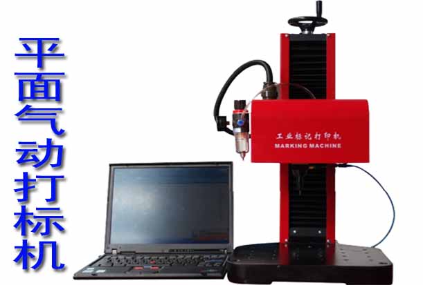 气动打标机原理:计算机控制打印针在X、Y二维平面内按一定轨迹运动的同时,打印针在压缩空气作用下做高频冲击运动,从而在工件上打印出有一定深度的标记。