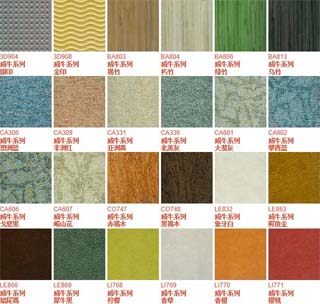 地毯纹 CA601 大漠灰 CA602攀西蓝 CA606戈壁黑 CA607崂山花 CA306澳洲蓝 CA309非洲红 CA331亚洲黄 CA336北美灰