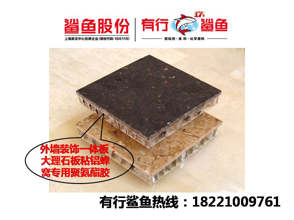 产品说明:【卫生间隔断胶】粘金属板聚氨酯胶有行鲨鱼品牌卫生间隔断胶:目前胶黏剂行业内包装桶大多是回料生产质量差,对胶黏剂产品的质量没有保证。卫生间隔断胶有行鲨鱼对包装进行重新整合选用优质的原料,包装上的产品信息更是一目了然,你值得信赖的选择。蜂窝铝板质量轻、韧性好、强度高、隔音隔热性能好,是大型工程天花吊顶的理想板材选择,并且蜂窝铝板安装方法多样化,可以进行沉重天花设计,可以上人进行维修,为了减轻船体重量,简化结构,提高效益,船体内部设备的轻型化在国外日益受到重视,内壁板、天花板、门板等采用铝蜂窝复合板已取得明显效果。这一新技术改变了制件的技术性能,延长使用寿命,减少了维护检修工作。同时,给人以舒适感,提高了船室的美观程度。 SY8409铝蜂窝 卫生间隔断胶产品介绍: 本品是属于改性无水 PU胶,粘接强度高,稳定性优良、不发泡,抗老化、抗冲击、耐水性能优良。适用于彩钢板、铝板、玻镁板、铝蜂窝、 PE、PP蜂窝等材质的粘合,石材与铝芯复合板材的粘合(解决了该领域用普通聚氨酯胶强度不够,用环氧胶板材会变形等问题),卫生间隔断胶广泛应用于建筑装饰材料行业,汽车箱体行业。成品符合欧盟 ROHS,GB/T-18583-2008等有害测试标准。 产品特性: 主 剂 聚合物类型 多元醇树脂聚合物 外 观 灰白色粘稠状液体 总固体含量(%) ≥99% 粘度(25℃) 25000-40000cps PH值 4.0-7.0 最低成膜温度℃ -15℃ 固化剂: 外 观 褐色液体 卫生间隔断胶粘度 (25℃) ≥200 使用方法:(1)卫生间隔断胶涂刷工艺流程:被涂刷工件表面预处理→配胶→涂刷→胶合→固化。被粘接面顺用清洁剂清洁表面,使其无锈蚀,无油渍,若这一环节未处理好,将影响发泡胶的附着力。(2)卫生间隔断胶的配比主剂:固化剂=100:25(重量比)为最佳状态配比。固化剂少了,会影响胶水固化时间。固化剂多了,胶体易发脆,且操作时间缩短,会存在质量隐患。混胶时必须搅拌均匀,因固化剂在搅拌时容易流淌到底部(3)卫生间隔断胶适用刮板及一般手工操作施胶,胶水涂布量单面350- 500g/m2, 上胶量偏上限效果最佳。为了保证粘接强度,请将胶均匀涂刮于粘物表面,用带齿塑料刮片刮比较好,因胶粘度大不能用毛刷刷胶。使用时请将该胶均匀涂刷在粘接物表面,涂刷不宜过厚,胶体裸露时间不宜太长。(4)本产品适合冷压操作工艺。加压(冷压):a.压力:8-12kg/cm2 ;b.加压时间:6-10 小时;手工布胶使用期:布好胶的板材尽量在15分钟内加压;养生期:卸压后养生72 小时;(5)未用完的卫生间隔断胶主剂将盖子密封好,以免固化结皮。工具清洗可用醋酸乙酯溶剂或丙酮。本品需在干燥、通风、密封的环境下存放,请勿接触水,敬告:在涂胶、施压的两次工序中,要在表干时间内完成,一般在20分钟以内 产品安全: 卫生间隔断胶属于多元醇聚合物,无毒,对皮肤和粘膜稍有刺激作用.应避免长时间与皮肤接触,施工毕用水冲洗干净。若不慎误食,请及时就医。本品不燃。 储存条件: 产品应贮存在密闭器内,防止卫生间隔断胶日晒、雨淋避免冷冻及高温,建议正常贮存温度5-25℃。保质期为3个月。 声 明: 以上参数均出自本公司实验室。由于各厂商作业过程中变异因素较多,建议贵公司先试用或技术部检测之后,确定本产品是否适用于您拟定的工艺及用途,才能批量适用,否则为此恕本公司不承担由此而产生的责任。卫生间隔断胶:鲨鱼股份企业对卫生间隔断胶原材料的选择非常严苛,我们深知卫生间隔断胶原材料的优劣直接影响到产品质量的好坏。选用劣质的原料进行生产,不仅卫生间隔断胶产品质量得不到保证,还会导致环境污染,严重损害人的身体健康。