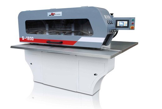 产品说明:直式单板无线薄片拼缝机 (轻型) S-1800 用途说明: 直式单板无线薄片拼缝机,适用於家具桌面、厨柜面板、门皮、装饰合板的实木薄片拼接。改变以往传统车缝线式的拼接机,直式单板无线薄片拼缝机 利用特殊加温、送料机械结构拼接, 使得木薄片能够紧密结合且拼接处无缝隙。能有效提升工作生产效率、减少后段砂光、降低成本。 单元说明: 拼接厚度范围:0.3~2.0mm 拼接宽度范围:50~1500mm 拼接长度范围:300~3000mm 拼接速度 :5~45M/min 工作台高度 :920mm 拼接温度 :100~220度C 所需压力 :5kgf/cm2 总电力 :Approx. 6.3KW 人机介面 : *集中式启动系统,包含送料速度、拼接启动/停止、加热启动及温度设定等功能。 *电热管加热/故障可由萤幕显示,使操作者易於办识故障与排除。 送料台面: *上、下履带式输送,变频驱动送料速度5 ~45m/min。 *不锈钢工作台面、恒定工作台高度920mm。 拼接温度: *拼接温度控制范围为100 ~220C。 *全机采用日系电热管、感热探头,加热稳定、温控灵敏度高。 *上、下中央导热板,使得拼接更加平坦。 压力控制: *美国Controlair lnc精密调压阀,分别独立控制,确保均匀加压於工件,使得拼接更加平整、顺畅。 *德国FESTO气压表,压力指示精准。 *美国Bosch进气过滤三联组合。 进料压轮: *进料压轮光电感应驱动,使得进料同步。 *进料压轮角度可微调,使薄片拼接密合性更佳。 随机配备: *工具箱×1 & 离型剂×1 2.直式单板无线薄片拼缝机 (重型) S-1800-HD 1台 用途说明: 直式单板无线薄片拼缝机,适用於家具桌面、厨柜面板、门皮、装饰合板的实木薄片拼接。改变以往传统车缝线式的拼接机,直式单板无线薄片拼缝机 利用特殊加温、送料机械结构拼接, 使得木薄片能够紧密结合且拼接处无缝隙。能有效提升工作生产效率、减少后段砂光、降低成本。 单元说明: 拼接厚度范围:2.0~4.0mm 拼接宽度范围:50~1500mm 拼接长度范围:300~2500mm 拼接速度 :5~25M/min 工作台高度 :920mm 拼接温度 :100~220度C 所需压力 :5kgf/cm2 总电力 :Approx. 6.3KW 人机介面 : *集中式启动系统,包含送料速度、拼接启动/停止、加热启动及温度设定等功能。 *电热管加热/故障可由萤幕显示,使操作者易於办识故障与排除。 送料台面: *上、下履带式输送,变频驱动送料速度5 ~45m/min。 *不锈钢工作台面、恒定工作台高度920mm。 拼接温度: *拼接温度控制范围为100 ~220C。 *全机采用日系电热管、感热探头,加热稳定、温控灵敏度高。 *上、下中央导热板,使得拼接更加平坦。 压力控制: *美国Controlair lnc精密调压阀,分别独立控制,确保均匀加压於工件,使得拼接更加平整、顺畅。 *德国FESTO气压表,压力指示精准。 *美国Bosch进气过滤三联组合。 进料压轮: *进料压轮光电感应驱动,使得进料同步。 *进料压轮角度可微调,使薄片拼接密合性更佳。 随机配备: *工具箱×1 & 离型剂×1