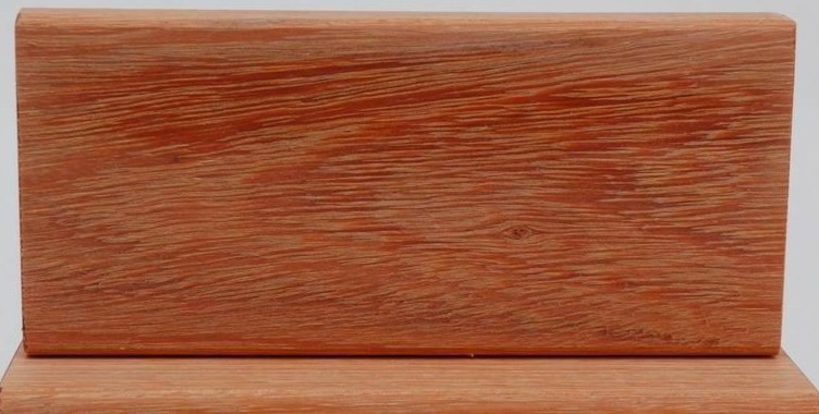 横断面:心边材区别明显。心材淡红色至橘红色。具黄褐色细线条。边材浅黄褐色,常见蓝变。生长年轮略可见。