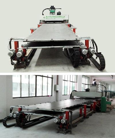 2+2发泡板热压机 主要技术参数: 热压板:1600×6000×50mm 间距:150mm 油缸直径:φ110×320mm 倾斜油缸:φ100×100mm 热压板两面进出(两块热压,两块装料,依次循环) 控制方式:手动十自动 进板方向:1600mm 总功率:13KW