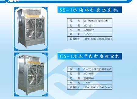 产品说明:GS-1干式无水系列及SS-1水式系列强力环保打磨除尘机是吉林市双赢兄弟木工机械根据林业企业污染大、除尘难问题与国内知名通风除尘设计专家合作研制而成。该设备适合于木制品加工、石材、面粉等粉尘污染较大的加工工序。尤其适合木材加工打磨除尘工序,该产品具有功率小、能耗低、噪音低、不与室外形成空气对流的性能。 GS-1干式无水系列采用特殊过滤材料与空气内循环沉降结构,整体采用防锈材料,高强度骨架。在使用过程中,可以有效吸附25-100纳米的粉尘及纤维。在一定期限内将过滤层取出使用清水冲洗或者抖动或者高压空气对吹即可达到清洁过滤层效果。过滤层可以长期使用,客户可以根据实际情况定期更换过滤层。 SS-1水式系列采用水帘洗涤和特殊过滤装置,整体采用镀锌板材、高强度骨架。尤其对亲水性物质有极强的吸附能力,可以有效吸附25-100纳米的颗粒及木质纤维。内置水位定位浮球可以自行进水,保证水位恒定。根据实际粉尘量大水定期打开排水口即可排水,一般3-8天排水一次。 客户可以根据实际车间大水、除尘工序繁易程度。尘埃量大水选择设备型号和数量,每两台除尘设备构成一个工作单元,每个工作单元适宜三张打磨平台,可同时供应多人同时进行打磨工作。客户可以选购本公司提供的半封闭配套打磨间也可以自行装配。GS-1干式系列及SS-1水式系列强力环保循环除尘机高效的性价比、高效的除尘效果是您最值得信赖伙伴。 利用该设备可以有效控制车间粉尘含量,降低操作人员尘肺等职业病患病率,并且使车间整体美观整洁,干净环保,减少工人流失。 注:1.如需帮助请致电2.双赢木工机械旨在为您提供更好的产品及最为经济合理的解决方案, 3.我们的技术专家随时为您提供技术帮助,并希望与您建立长期的而持久的合作关系!