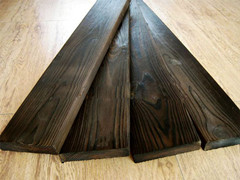 炭化木是在不含任何化学剂条件下应用高温对木材进行同质炭化处理,使木材表面具有深棕色的美观效果,并拥有防腐及抗生物侵袭的作用,其含水率低、不易吸水、材质稳定、不变形、完全脱脂不溢脂、隔热性能好、施工简单、涂刷方便、无特殊气味,是理想的室内及桑拿浴室材料,成为卫浴装饰新的流行趋势;其防腐烂,抗虫蛀、抗变形开裂,耐高温性能也成为户外泳池景观的理想材料。