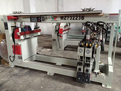 鑫荣MZ73223B三排钻 最大钻孔直径:Ø35mm 最大钻孔深度:60mm 钻轴数:11x4+21x1个 电机功率:7.5kw 主轴转速:2840r/min 使用电压:380v 机械重量:1000kg 外形尺寸:2600x2500x1580mm