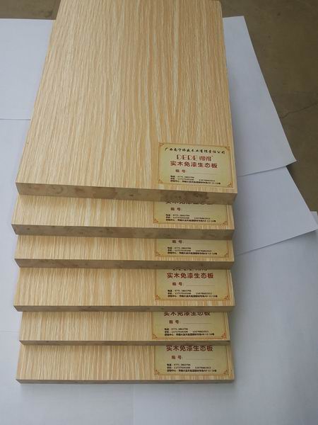 产品说明:柳桉原木生态板是采用广西资源丰富的柳桉原木经特殊干燥工艺处理后,再采用传统榫卯拼接制作的纯木质板材。产品结构和物理化性能稳定,具备木材硬度好、韧性强度高、无特殊气味、吸音隔音、耐腐、抗蓝变、抗虫、不易变形等优良性能,天然环保。可广泛应用于家居板式家具制作、宾馆、办公等场所装饰,常用规格型号为:2400×1200×17~18mm 2440×1220×17~18 mm 并可由供需双方约定生产制造(板面一律采用抗紫外线优质三胺材质覆盖)。