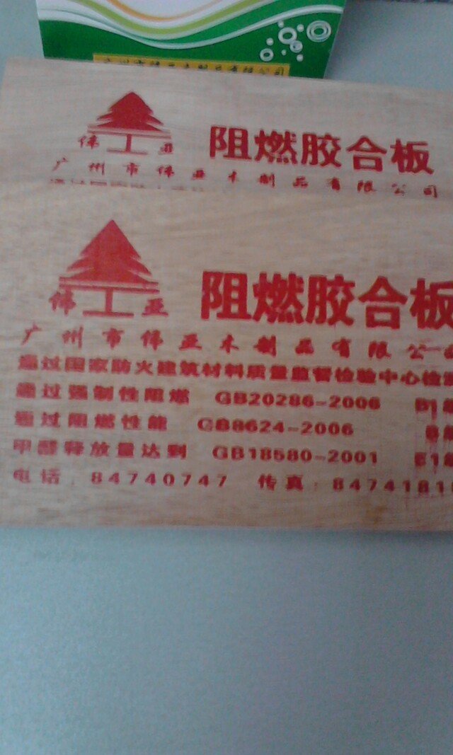 阻燃胶合板通过进行防火阻燃,防腐,防霉工艺技术处理,生产工艺采用抽真空,加压,浸泡阻燃药剂处理后,烘干而成,加工程序严格执行国家《难燃木材》生产标准。产品通过国家防火建筑材料质量监督检验中心检测,产品燃烧性能达到GB8624-2006 B级国家安全标准,甲醛释放量达到GB18580—2001 E1级国家环保标准。具有隔音,防虫蛀,耐老化;抗冲击力好,握钉力强,易于安装施工。