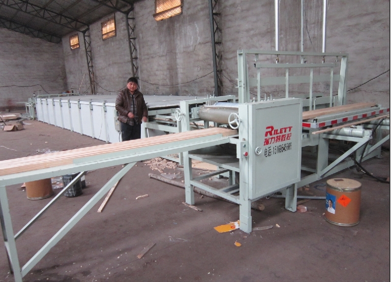 产品说明:产品具体描述: 瑞力特细木工板拼板机 瑞力特全自动细木工板拼板机,是国内最先进的自动化程度最高的芯板拼板机。整个过程只需两个工人操作,拼板平整度高,完全可达到出口标准,满足客户节省人工、提高效率的需求。 一、操作过程: 人工将料放入上料筐----自动进料----自动裁断----自动推料----自动烘干---自动下料(尺寸可调)--自动升降机 二、设备参数: 拼接芯板规格(长×宽×高):1300×2500×(12~40)mm(可调)气动系统工作压力:0.5MPa 总功率:15kw 外形尺寸(长×宽×高):16*6*1.5M 设备重量:10吨液压系统工作压力:20吨加热方式选择:热导油/电磁总功率:15KW 电源:380V 三、设备优势: 1.节省人工:2个工人即可操作。 2.速度快:1分钟左右出一张标准板。 3.出板质量好:四面压,压力大,平整度好,高温加热,胶水粘合度好。 4.操作简单,一学就会,容易维护(人性化设计,按键灵活易懂,设备配有可视显示屏)。 5.设备为加重型:长久耐用,保证了出板的精度 6.该设备带有自动纠偏系统,防止板材跑偏。 四、售后服务: 1.货到后,2-3名技术员上门安装调试设备,培训客户使用,直到设备可以正常运行。 2.一年内免费维修,客户遇到疑问,随时电话沟通厂家,厂家派技术员上门解决。 要看详细的视频请加QQ,董经理