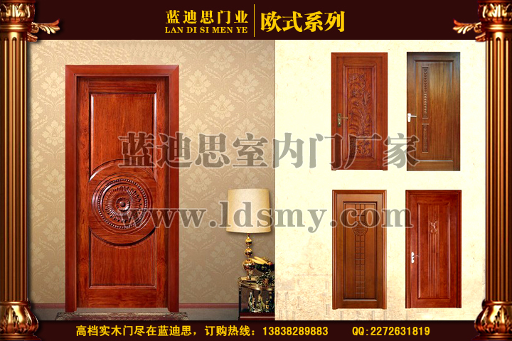 产品说明:郑州蓝迪思木门厂家每款木门款式都非常的新颖,每一款也都有它们的优点和特性。如:实木复合烤漆门、实木复合门、复合门、双包门等,实木复合烤漆门就是门的整体完全用实木加工而成,时下比较流行的材质大致有胡桃木、樱桃木、橡木等等。每款产品美观大方、立体感强、工艺精湛,而且施工便捷,门框和门扇完美结合,安装简便、既省时省工又省料省钱,属经济实惠产品,效果高雅。 实木烤漆套装门一般是指以实木作为主材,外压贴中密度板作为平衡层,以国产或进口天然木皮作为饰面,经过高温热压后制成,外喷饰高档环保木器漆的复合门。烤漆复合门是市场最畅销的,款式新颖美观,有较强的整体感和立体感,木纹纹理清晰,手感极好,很适合各种样式的室内家居装修。在做工方面十分的优良,不变形不开裂,市场销售也很不错,受到了广大人们的需求,容易被大众接受。
