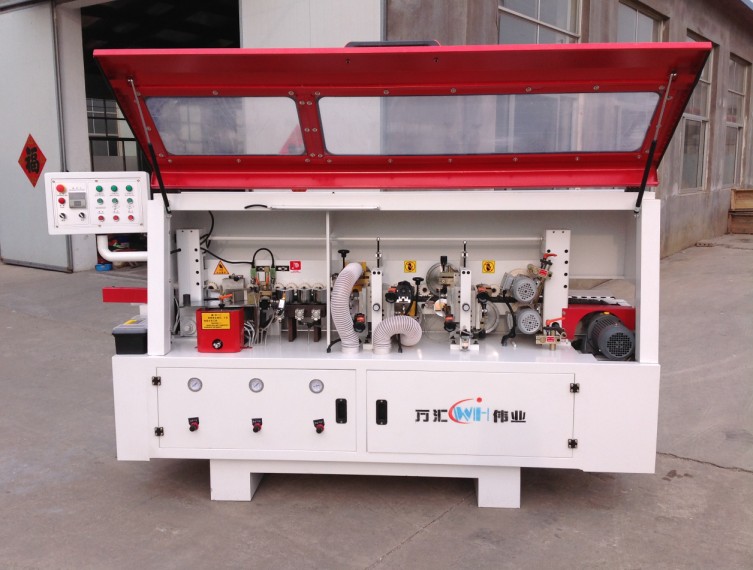 产品说明:封边作业是板式家具制造过程中的一道重要工序.封边质量的好坏直接影响产品的质量、价格和档次.通过封边,可以很好地改善家具的外观质量,避免家具在运输和使用过程中边角部损坏、贴面层被掀起或剥落,同时可起到防水、封闭有害气体的释放和减少变形等作用,而且还能美化家具、愉悦心情.板式家具生产企业使用的原料主要是刨花板、中密度板及其它人造板,所选用的封边条主要有PVC、聚脂、三聚氰胺和木条等.不同材料和规格的封边条使用不同的封边设备.如今家具生产企业所使用的封边机,主要有手动直曲线封边机和全自动直线封边机两种.手动封边机结构较简单,其安装、使用及维护相对较容易;而全自动直线封边机由于结构复杂、制造精度高、价格昂贵,在使用过程中易发生这样或那样的问题.因此,安装、调试好一台全自动直线封边机,是使其长期保持稳定工作状态和完成高质量封边作业的重要保证