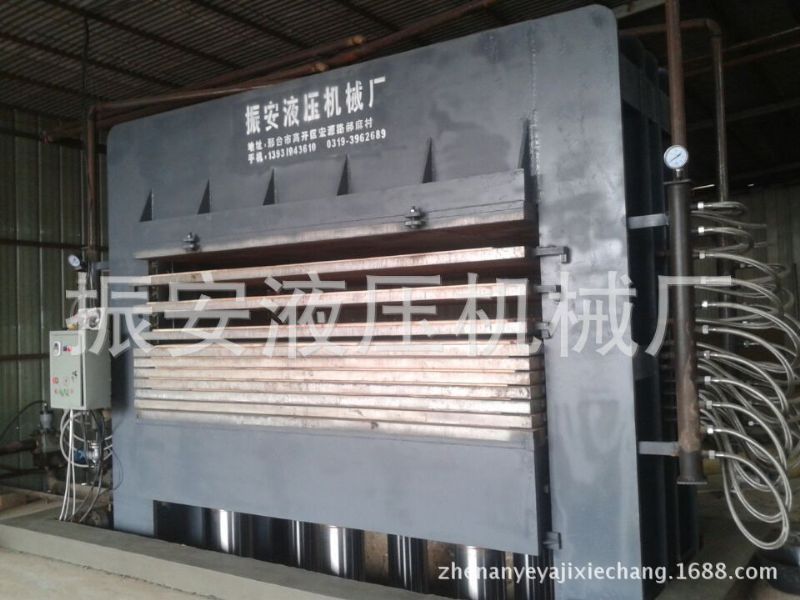产品说明:热压贴面机,800T热压贴面机,1200T热压贴面机,1000T热压贴面机,贴面热压机,双贴面热压机,单层热压机,热压贴面机适用于中型家具厂或小型人造板二次加工(专业贴面)工厂,用来热压粘合家具板件,木门(即薄人造板与内框胶合)和在各种人造板:如胶合板、细木工板、中纤板、刨花板表面压贴各种材料:装饰纸、装饰布、三聚氰胺防火板、科技木贴面:金属泊、人造与天然微薄木、天然薄木拼花。还可用做单板干燥整平、彩色装饰木片的整平、定型。三聚氰胺饰面板型是将带有不同颜色或纹理的纸放入三聚氰胺树脂胶粘剂中浸泡,然后干燥到一定固化程度,将其铺装在刨花板、中密度纤维板或硬质纤维板表面,经热压而成。三聚氰胺饰面门板具有表面平整、不易变形、色泽鲜艳、耐磨耐腐蚀的优点,而且价格适中。 800吨热压贴面机技术参数:工作压力:800吨 油缸数量:6只、提升缸2只。功率:18.5KW 外形尺寸:3500mm(长)×1400mm(宽) ×4200mm(高) 加热方式:热油循环加热 蒸汽加热两种: 总重量:35吨: 1200吨热压贴面机技术参数:工作压力:1200吨 油缸数量:6只 油缸直径:φ320 ,提升缸2只:功率18.5KW 外形尺寸:1400X3500mm 加热方式:热油循环加热.蒸汽加热: 总重量:40吨 本公司实行销售设备、培训技术、上门安装调试,保证生产出合格产品。质优价廉;互惠互利;诚信双赢