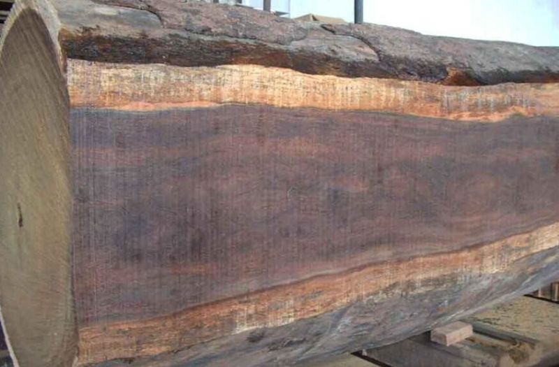 木材系散孔材。心边材区分明显;心材红褐色至深褐色,导管中含有的白色沉淀物使木材呈现斑纹。边浅粉红白色,厚5cm。生长轮不明显。管孔肉眼下可见,散生,数少,导管中常含有白色沉积物。轴向薄壁组织在放大镜下明显,白色细线带状。木射线在放大上明显;略密;甚窄。波痕及胞间道未见。木材有光泽;气味酸性,纹理直或略斜,常交错;结构中至粗,均匀。