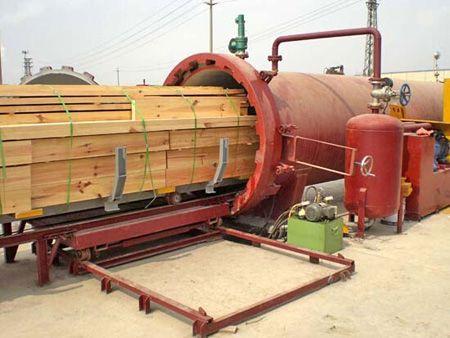 四、打开罐内加热系统、开启液料循环系统、加压系统加压至0.3-1.4mpa ,温度不超过80度,保持60-120分钟(根据木材的厚度、密度和浸渍深度而定)。