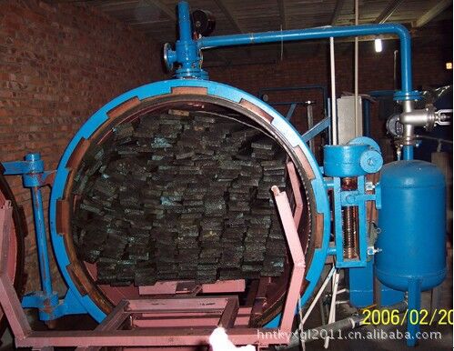 锦旭能源科技股份有限公司生产的木材防腐设备机组是用于户外园林、景观、别墅以及室内装璜的竹木制品的防腐、防霉、防蛀、防白蚁的专用设备。具有适用性广、深加工处理效果好、容量大、布局合理、安全可靠等优点,减轻劳动强度,节省劳动力,广泛满足用户对各类木材深加工要求。 木材防护成套设备在操作安全性方面作了特别的考虑,为避免误操作等某些人为因素带来的不安全隐患,在安全联锁控制系统中作了周密的设计,大大提高了设备安全运行的可靠性,该设备结构设计紧凑合理,操作简单易学、功能先进、通用性强,木材处理量大,配套设备选用合理,辅助工作时间短、效率高,药剂循环使用,生产成本低,整个系统采用封闭循环,不污染环境,使用安全可靠。高压设备处理的木材不仅能满足国际行业标准,而且能进行超标准生产,是未来防腐、阻燃、染色的主流设备。 规格及技术参数: 1、木材处理量:1-20m3/罐 2、工作压力:0.1-2.5MPa 3、真空度:-0.098MPa 4、工作温度:0-180摄氏度 5、工作介质:各种水溶性木材保护处理剂溶液 6、作业方法:真空浸注法、细胞浸注法、高低频压法 7、设备处理量:可根据木材实际要求控制 一、生产工艺程序: 1、按工艺生产需要在搅拌罐内配制药液,并把药剂装入储药罐待用 2、按产品规格取材——选材并四面刨光——装入料车——开启罐门——推动移车台与罐内接轨——将料车推至罐内——关闭罐门——真空作业——吸液——补液——加压——频压——卸压——回液——后真空——卸压——开启罐门(待压力卸完后)——出料——检验。 二、操作顺序: 真空----浸渍----加压----真空----干燥。 三、使用方法: 1、满细胞法:满细胞法又叫全吸收法,它是一种使防腐剂充满木材细胞的防腐工艺方法。通常适用于水溶性防腐剂(如:CCA、ACQ),用该种方法处理木材可以使木材保留最大数量的防腐剂。 2、高低频压法:用不断重复的常压和压力周期对木材进行防腐处理的工艺方法叫高低频压法,用这种工艺方法处理木材能使难浸注的木材和湿材得到比满细胞法更优良的防腐效果。通常情况下,木材的浸注深度会更深。这是一种木材防腐效果较好的防腐工艺,推荐使用。 四、注意事项: 1、在工作之前,一定要检查各电器是否完好,各处阀门、压力表、真空表、液位计、各类泵是否正常,损坏的则进行更换。 2、在加热、加压过程中,要逐步加温、加压,并要注意压力变化,不得超过罐内所规定的工作压力