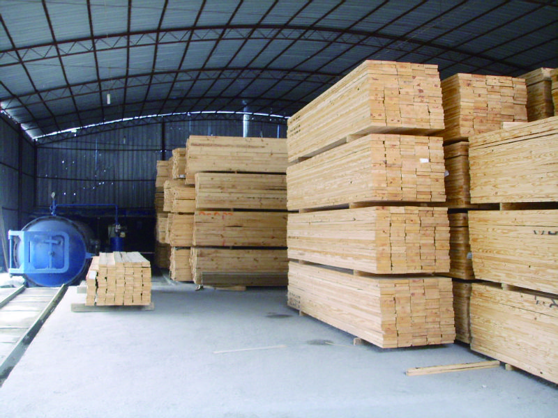 锦旭能源科技股份有限公司生产的木材防腐设备机组是用于户外园林、景观、别墅以及室内装璜的竹木制品的防腐、防霉、防蛀、防白蚁的专用设备。具有适用性广、深加工处理效果好、容量大、布局合理、安全可靠等优点,减轻劳动强度,节省劳动力,广泛满足用户对各类木材深加工要求。 木材防护成套设备在操作安全性方面作了特别的考虑,为避免误操作等某些人为因素带来的不安全隐患,在安全联锁控制系统中作了周密的设计,大大提高了设备安全运行的可靠性,该设备结构设计紧凑合理,操作简单易学、功能先进、通用性强,木材处理量大,配套设备选用合理,辅助工作时间短、效率高,药剂循环使用,生产成本低,整个系统采用封闭循环,不污染环境,使用安全可靠。高压设备处理的木材不仅能满足国际行业标准,而且能进行超标准生产,是未来防腐、阻燃、染色的主流设备。 规格及技术参数: 1、木材处理量:1-20m3/罐 2、工作压力:0.1-2.5MPa 3、真空度:-0.098MPa 4、工作温度:0-180摄氏度 5、工作介质:各种水溶性木材保护处理剂溶液 6、作业方法:真空浸注法、细胞浸注法、高低频压法 7、设备处理量:可根据木材实际要求控制 一、生产工艺程序: 1、按工艺生产需要在搅拌罐内配制药液,并把药剂装入储药罐待用 2、按产品规格取材——选材并四面刨光——装入料车——开启罐门——推动移车台与罐内接轨——将料车推至罐内——关闭罐门——真空作业——吸液——补液——加压——频压——卸压——回液——后真空——卸压——开启罐门(待压力卸完后)——出料——检验。 二、操作顺序: 真空----浸渍----加压----真空----干燥。 三、使用方法: 1、满细胞法:满细胞法又叫全吸收法,它是一种使防腐剂充满木材细胞的防腐工艺方法。通常适用于水溶性防腐剂(如:CCA、ACQ),用该种方法处理木材可以使木材保留最大数量的防腐剂。 2、高低频压法:用不断重复的常压和压力周期对木材进行防腐处理的工艺方法叫高低频压法,用这种工艺方法处理木材能使难浸注的木材和湿材得到比满细胞法更优良的防腐效果。通常情况下,木材的浸注深度会更深。这是一种木材防腐效果较好的防腐工艺,推荐使用。 四、注意事项: 1、在工作之前,一定要检查各电器是否完好,各处阀门、压力表、真空表、液位计、各类泵是否正常,损坏的则进行更换。 2、在加热、加压过程中,要逐步加温、加压,并要注意压力变化,不得超过罐内所规定的工作压力