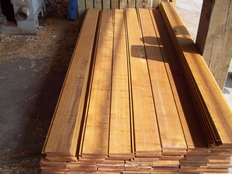 宏观构造:散孔材。管孔肉眼下明显,少,略大;主为单管孔,少数径列或斜徇复管孔(2~3个);具黑色树胶及硫磺色沉积物。轴向薄壁组织肉眼下明显,发达,翼状及轮界状。木射线放大镜下明显,密度中,甚窄。 木材材性: 微具光泽。纹理深交错;结构粗;质量硬;强度高;干缩甚小。锯、刨加工困难,树胶易塞锯齿;胶接、车旋、油漆性能良好;钉钉需先打孔;能腐蚀金属。耐腐。干燥慢,但稳定性很好。气干密度0.80g/cm3。 木材用途: 适用于室内外装修、重轻型木结构、木地板、细木工、枕木、桥梁、码头、别墅庭院,雕刻、旋切装饰单板,也是红木家具的替代品。从硫磺色沉积物中可提取纹织染料等。