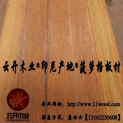产品说明:菠萝格商业俗称:菠萝格菠萝格曾用名:铁梨木菠萝格树木中文名: 印茄菠萝格树木拉丁名:Intsia.spp 菠萝格国外商品材名称:Merbau 菠萝格科属:苏木科(Caesalpiniaceae) 菠萝格规格板材印尼菠萝格红湿板 45*130/150*2000/2100 60*80*4100/4200 60*130/140/150/160*2100/2200 80*100*2100/2200/4100/4200 印尼菠萝格白板 19*120*2100 19*130*630/780/930/1830 19*130*1500 19*90*1200 印尼菠萝格拉丝干板/湿板 19*90*1800/2100/2400/2700/3000/3300/3600/3900/4200 菠萝格分布:大乔木,树高可达45m,直径1.5米或以上;菠萝格分布于马来西亚、印度尼西亚、菲律宾、缅甸南部、泰国、新几内亚,所罗门、斐济和萨摩群岛等地。 菠萝格加工工艺:刨光、防腐、造型、烘干、车圆等,本公司可提供定尺加工。 菠萝格材性:木材散孔。心材呈黄、橙褐色,呈深浅相交条纹,边心材区别明显,结构一般,均匀;木材具光泽;无特殊气味;间杂黄金线,色泽庄重耐看,价格适中,喜者众多。菠萝格材质:木材重或中至重,气干密度0.80-0.94 g/cm3,纹理交错,重硬坚韧,材性其稳定,花纹美观,心材甚耐久,有“红木”之称,含油、抗潮抗白蚁性极强,耐候性强。 菠萝格用途:适用于户外地板、园林景观、户外防腐木、室内地板、高纹家具、室内装饰、门窗柜、车船桥梁等。 菠萝格是木地板现有材种中稳定性最好的,售后问题很少。菠萝格因颜色有轻微差别,分“红菠萝”、“黄菠萝”,大径材、树根部颜色偏红、偏深,品质较好,小径材、树梢部颜色偏黄、偏浅,色泽较好。是目前市场上的主销地板,属最佳性价比材料。 非洲菠萝格、印尼菠萝格、南洋木宝、铁梨木菠萝格又分印尼菠萝格及非洲菠萝格。菠萝格是木地板现有材种中稳定性最好的,售后问题很少。菠萝格因颜色有轻微差别,分“红菠萝”、“黄菠萝”,大径材、树根部颜色偏红、偏深,品质较好,小径材、树梢部颜色偏黄、偏浅,色泽较好。是目前市场上的主销地板,属最佳性价比材料。