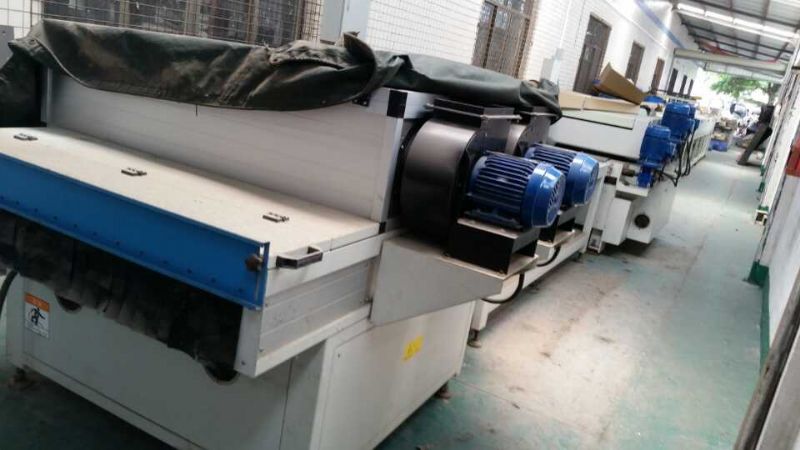 台湾丰巧900mm油漆线。设备含1台900mm底漆砂光机,1台三灯UV干燥机,1台流平干燥机,1台输送机,1台双头全精密滚涂机。 另有1套台湾丰巧600mm地板油漆线。