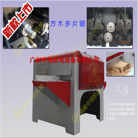 该多片锯主要用于锯切方料, 加工成多片规格板。上下轴设计,加工口径大。 具有锯路小、锯销表面光滑、高出材率。是加工指接板、细木工的板、包装板等最理想的木工机械设备。