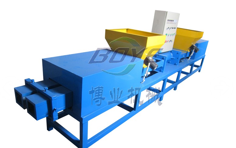 产品说明:托盘脚蹲垫块成型机:利用废弃物木屑、木刨花做为原料,经烘干机干燥,再和胶水混合均匀后;一次热压成型出的脚墩,美观洁净,不掉渣屑、防水性好(泡水48小时不开裂,风刮日晒不开裂),着钉力强。适用于要求较高的客户,可根据规格尺寸订做模具,做出的脚墩产品出口免检免熏蒸,甲醛释放量(E2),均符合国家标准,其内结合强度达1.07mpa,握螺钉力垂直为1590N,平行为1660N是制作免熏蒸木托盘支架(脚墩,架腿)理想材料,本产品主要用于代替原木托盘上所用的脚墩,免熏蒸,免热处理。 该设备结构简单,操作方便,生产出的刨花(胶木)脚墩洁净环保,市场前景广阔,符合国家产业发展政策,是木制品包装企业产品升级和私人投资办厂兴业的首选。本设备投入少只是普通压板机的三分之一不到,因生产工艺原理不同,出的产品光泽度/防水性/握钉力是压厚刨花、木屑板裁锯的木屑(胶木)脚墩无发比拟的。
