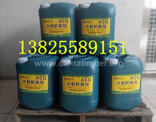 产品说明:厂家直销,欢迎定做各种浓度产品 ACQ是季铵铜的简称,它主要是由氧化铜和季胺盐组成,它不含砷和铬,是一种对人畜低毒的环保型的木材防腐剂。在国际上ACQ是最具有发展前景的木材防腐剂之一。性能特点: 纯兰色液体,处理木材后的颜色为绿色。略带氨味,抗流失性强,不降低木材强度,不影响油漆,通过ACQ处理的木材可保证在40年内不受腐朽和白蚁的侵蚀。使用范围: 建筑木材、装饰材料、园艺木制品、木桥、室外地板、木栅栏、码头、造船、矿用木材等的防腐防蚁处理,尤其适用于与土壤和水接触的木材防腐防蚁。使用说明: 1、适用于真空加压处理木材。2、使用浓度为有效成分0.8---1.5%。3、操作工带胶皮手套工作,食前洗手。4、药剂不得随意排放。