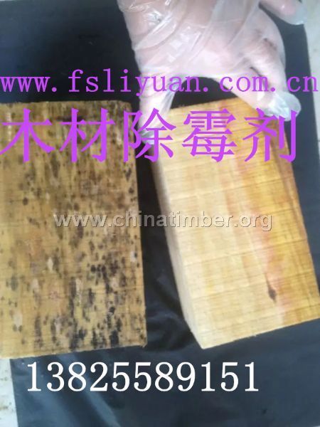 产品说明:竹木制品高效快速除霉剂一、木材除霉剂简介: 我公司生产的木材除霉剂产品是新一代高活性除霉、去霉浓缩液,产品主要成分为霉菌分解因子、杀菌抑菌剂,可去除多种细菌、真菌、蛀虫、及霉菌孢子引起的产品霉变,是目前市场上最有效、最快捷、最实惠的新型除霉产品。 产品除霉原理为霉菌分解因子通过水性载体,吸附捕捉霉菌,刺破霉菌细胞膜,充分渗透至其内部将霉菌杀死,并对霉菌进行分解,使其脱落消失。对于深入产品内部的顽固性霉斑,除霉灵同样可以达到分解并抑制其再生的效果。各类细菌造成霉变的产品,使用除霉灵可在快速分解霉菌的同时,最大程度上还原产品材质本色,不留霉痕。本产品为出口环保产品,操作简单,自来水稀释后浸泡发霉产品即可。具体使用方法,请参考以下产品使用说明。 使用说明:A、针对发霉轻微、表面只有霉斑、霉点类产品,勾兑比例1:3-5后浸泡30分钟左右,或直至霉斑消失(自来水即可)。B、针对发霉情况严重、表面霉烂或霉菌已经渗透至产品内部类产品,勾兑比例1:1浸泡,或直接喷涂(自来水即可) 以1:5比例勾兑为例:将5桶冷水倒入水泥池(缸)中,再倒入1桶除霉灵,充分搅拌均匀后将发霉产品放入药水中,浸泡即可,并确保产品不要露出水面。一般情况下,发霉情况轻微产品15-30分钟内即可处理完毕。捞出处理完产品后,滴干药水,马上进行下一批处理,以免药水挥发造成浪费。 每次勾兑的药水处理产品次数建议不要超过5次,因为随着处理产品的数量增多,除霉因子含量降低,药水功效会随之下降,除霉时间变长,甚至分解霉菌无效,此时请根据实际情况酌情添加药水,以确保药水功效及处理时间的稳定性。如果药液浑浊,建议重新配置药液。 注:如产品不能浸泡药液,建议用原液或稀释一倍的药液,在产品表面喷图1-2次,也可达到除霉效果。以上比例或建议为本公司测试数据,具体使用比例请根据工厂实际产品少量测试后,再进行批量处理,避免产生浪费。 注意事项:本产品具有挥发性,不使用时密封保存,置于常温、阴凉干燥处即可,避免阳光直射或高温,远离明火,以确保产品功效及稳定性。 包装说明:25kg/桶; 有效期2年。